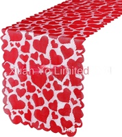 Hot Sale Valentine's Day Party Home Decoration Valentine Red Heart Polyester Woven Vintage Table Runner