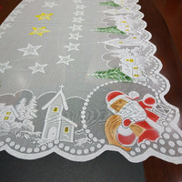 Santa Claus Christmas Xmas Jacquard 100% Polyester Square Tablecloth Costume Set Nice Holiday Decoration for Home Outdoor