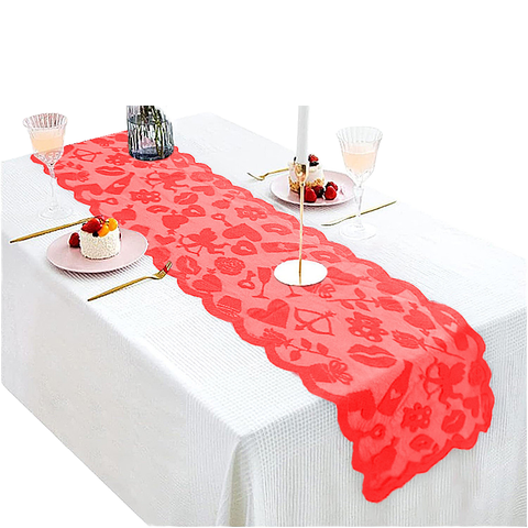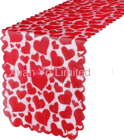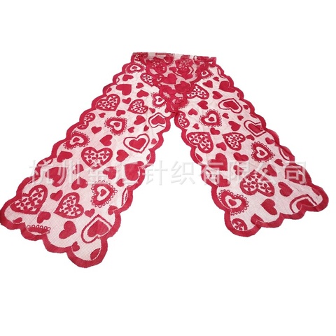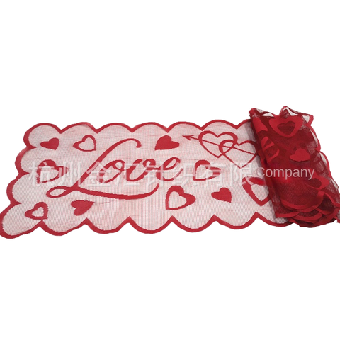 Wholesale Valentine's Day Woven Printed Red Lace Table Flag 14x72in Oilproof Home Decor