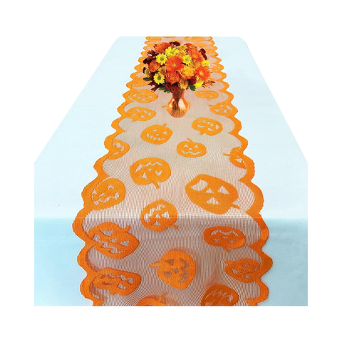 Orange Pumpkin Lace Table Runner 72 Inch Halloween Table Decorations Jack O Lanterns Centerpiece Idea for Parties