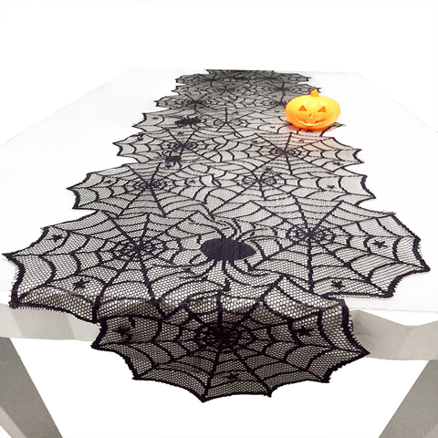 Halloween Party Table Runners 18-72 Inch Spider Web Black Lace Decorations Dinner Table Favors for Festive Ambience