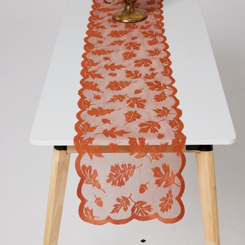 Thanksgiving Table Runner 13x72 Inch Maple Leaves Lace Harvest Table Cover Fall Party Tableware & Decorations