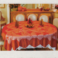 Harvest Pumpkin Orange Lace Tablecloths 100% Polyester Jacquard Style Printed Pattern 60x84 Inch