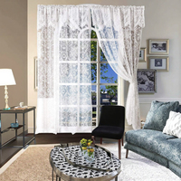 2-Panel White Lace Curtains with Floral Embroidered Valances Semi-Sheer Floral Embroidered Drapes