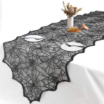 18X72 inç siyah dantel örümcek Web 100% Polyester masa koşucu cadılar bayramı jakarlı baskılı yıldız şekli olaylar partiler